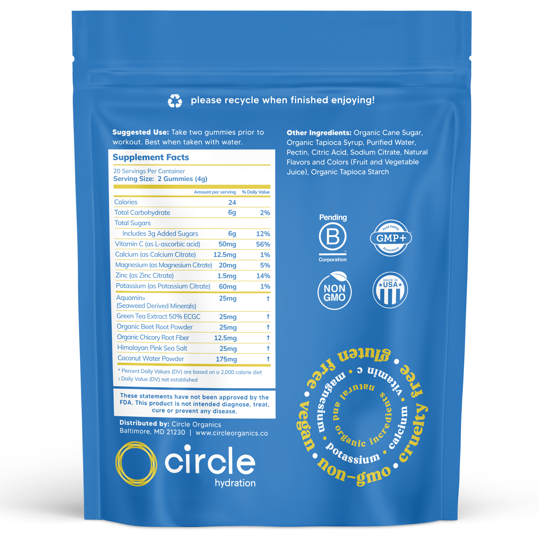 We prioritize high-integrity sourcing for our Pre-Workout Electrolyte Gummies. By using organic beet root and standardized green tea extract, we ensure your body receives nutrient-dense support that honors the "Circle" of regenerative health and physical resilience.